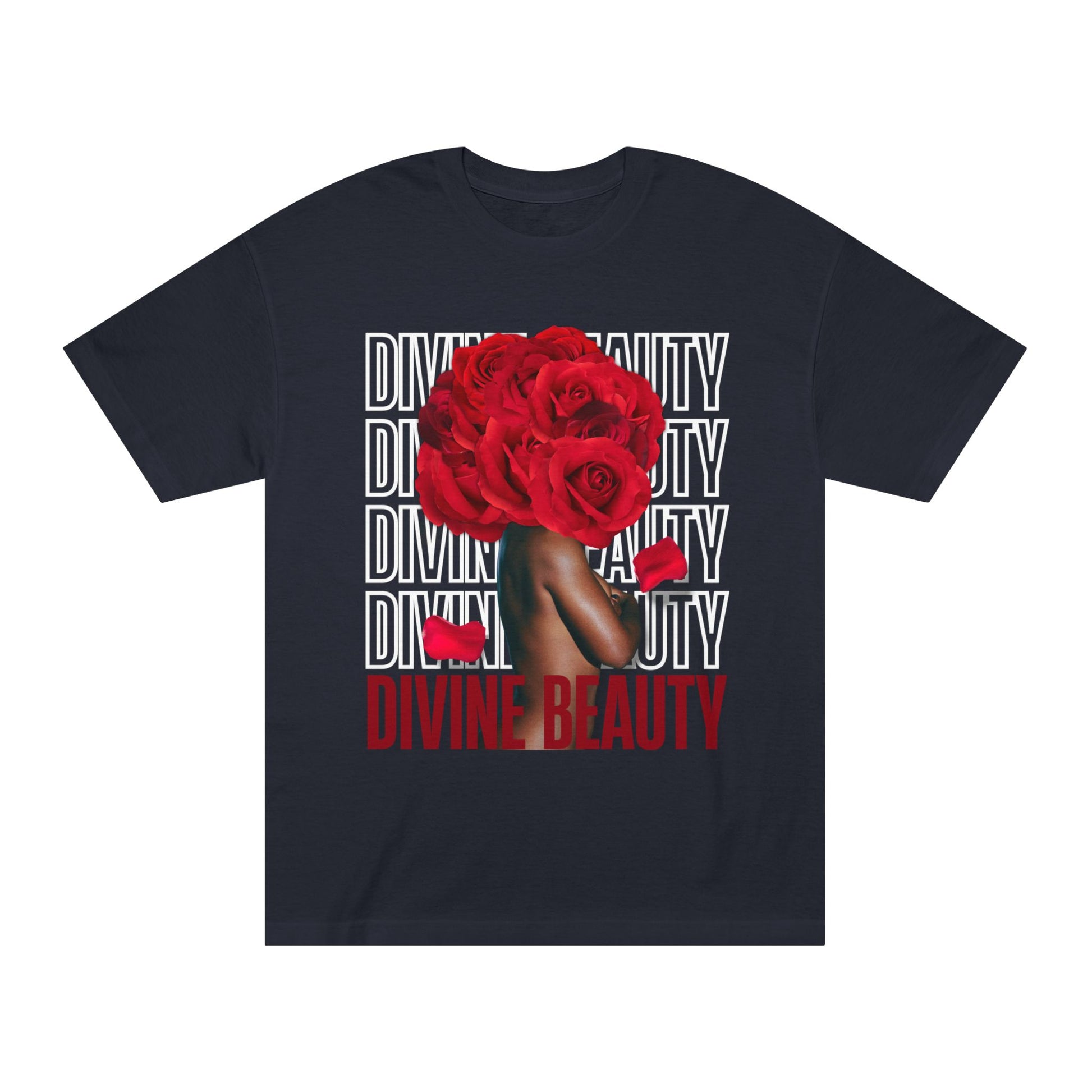 Elevate your wardrobe with this stylish unisex classic tee that embodies both comfort and trendy aesthetics. With a striking design featuring bold roses and the empowering phrase 'Divine Beauty', this shirt radiates a vibe of confidence and self-expression. Perfect for casual outings, cozy gatherings with friends, or simply lounging at home, it seamlessly fits into various aspects of daily life. This tee is ideal for fashion-forward individuals, flower lovers, and anyone who wishes to embrace their uniqueness. Great for special occasions like birthdays, Valentine's Day, or just to celebrate life's little moments!